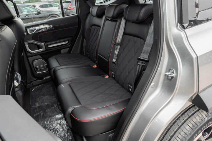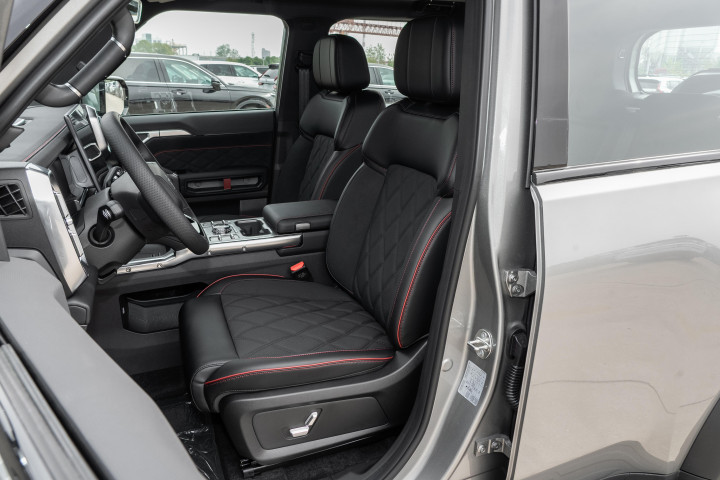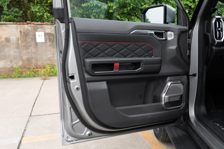 车内的细节设计也很用心,钻石纹理的实体按键,硬派干练,而且大小和手感都很不错,开车时不用低头看,盲操就能准确操作,安全性和便捷性都很好。9 处力量派软包覆拉手,在颠簸路段行驶时,车内乘客可以抓握,乘坐起来更稳。G318 路线饰板氛围灯,晚上点亮后很有氛围感,很对越野爱好者的胃口。