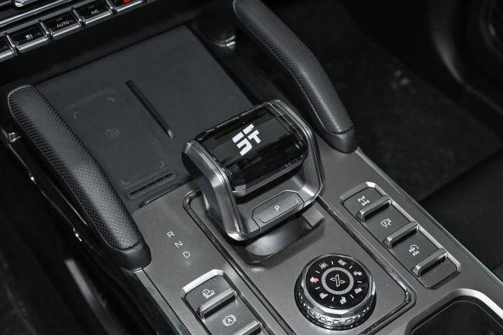 标配的电控牙嵌式差速锁,和牧马人用的是同款类型,脱困能力很不错。有次开车经过一段坑洼路段,右后轮不小心陷入了小土坑,我还以为要下车推车,结果打开差速锁后,系统很快把动力传递到其他有附着力的车轮上,车子轻松就爬了出来,反应速度和动力表现都很靠谱。